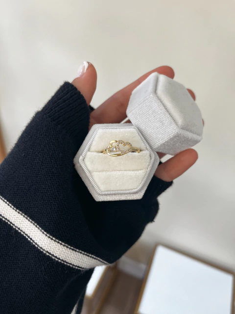 Añade un toque de brillo sofisticado a tu estilo con este anillo de acero dorado, decorado con piedras en micropavé que capturan la luz en cada ángulo. Su diseño elegante lo convierte en el accesorio preferido de tu alhajero.