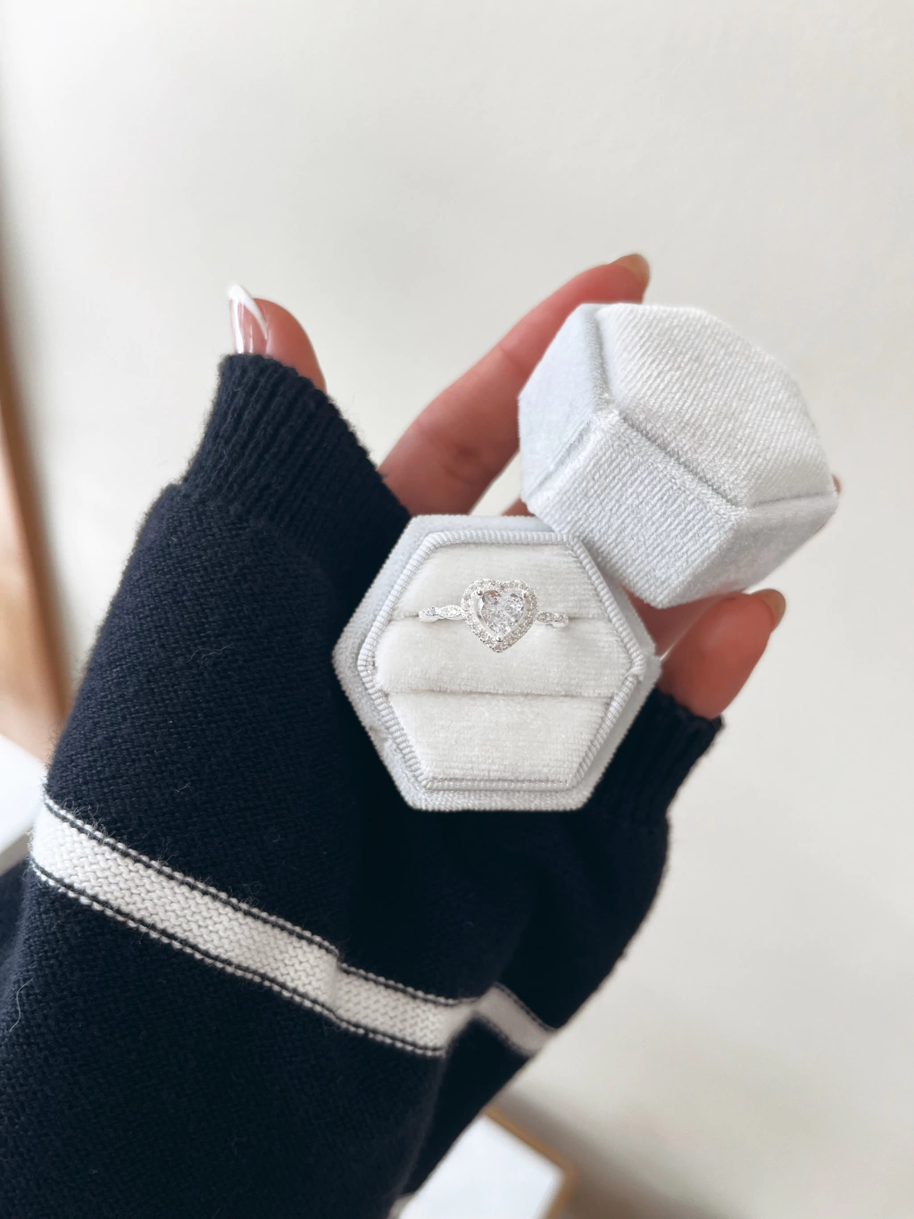 Este exquisito anillo está elaborado en plata 925, con un delicado diseño que presenta un corazón central de cubic y un elegante micropavé. Su brillo sutil y sofisticado lo convierte en la elección perfecta para cualquier ocasión, ya sea un evento especial o el uso diario.