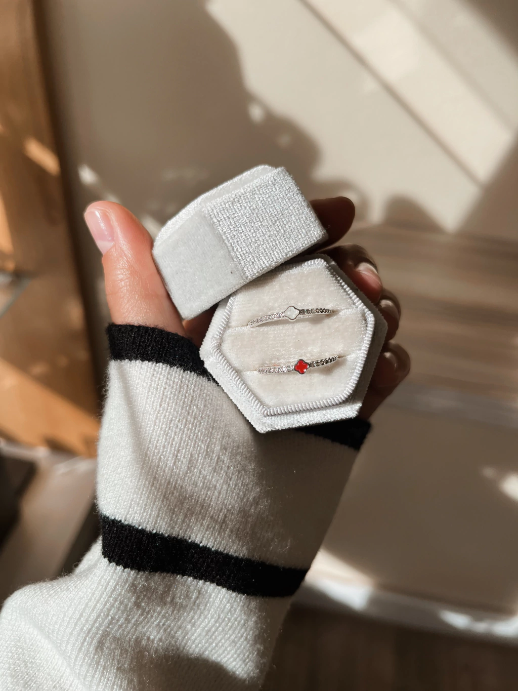 Anillo en acero blanco con un delicado mini trébol inspirado en el estilo Van Cleef, símbolo de elegancia y buena fortuna. Su cuerpo está adornado con micropavé de circonias que aportan un brillo sutil y sofisticado, creando una pieza refinada y atemporal. ✨🍀