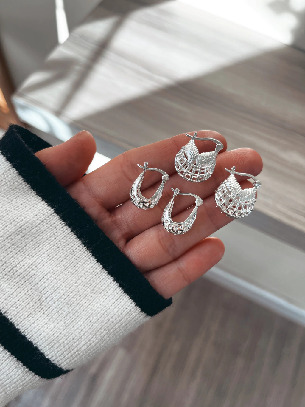 Diseño estilo canasta calada que combina elegancia y delicadeza en una pieza liviana pero con presencia. Su forma texturada y abierta capta la luz y le da un aire artesanal moderno, ideal para elevar cualquier look con un detalle distintivo.