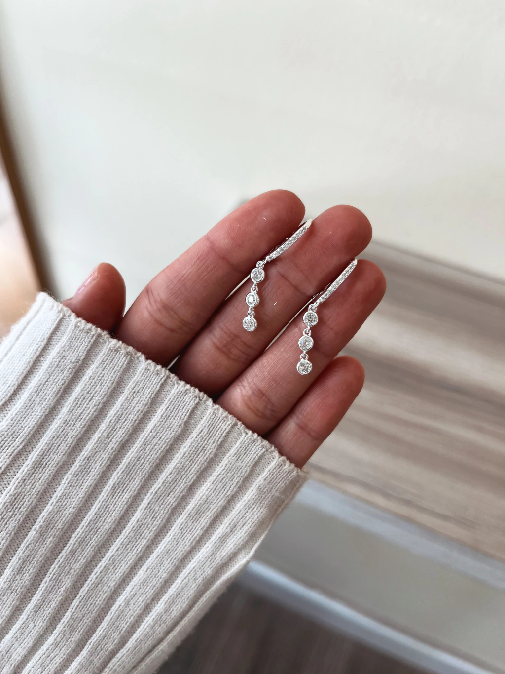 Argollas Namia en Plata 925 con diseño clásico y moderno, ideales para quienes buscan elegancia y comodidad. Cuentan con un colgante adornado con cúbics que aportan un brillo sutil y sofisticado. Su cierre clic garantiza seguridad y facilidad al colocarlas.