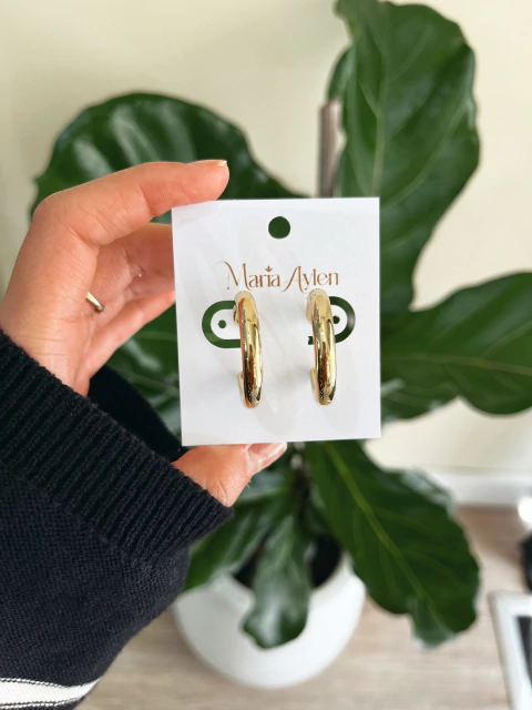 Aros inflados de fantasía dorados. Cuentan con perno de acero quirúrgico lo que los hace alergénicos, ideales para pieles sensibles.