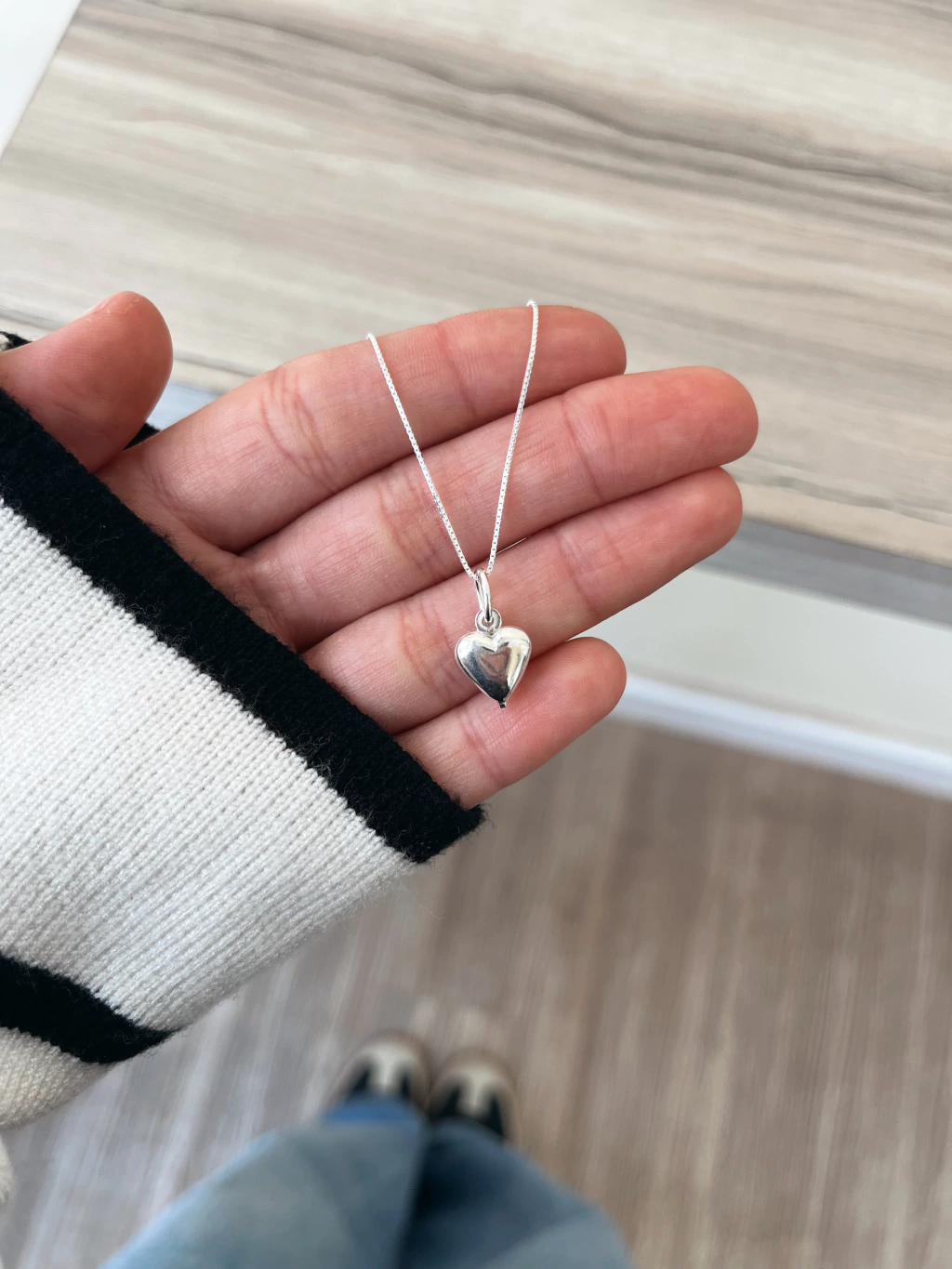 Collar en plata 925 con dije de corazón inflado, un diseño tierno y delicado, perfecto para llevar tus sentimientos cerca del corazón o regalar a alguien especial.