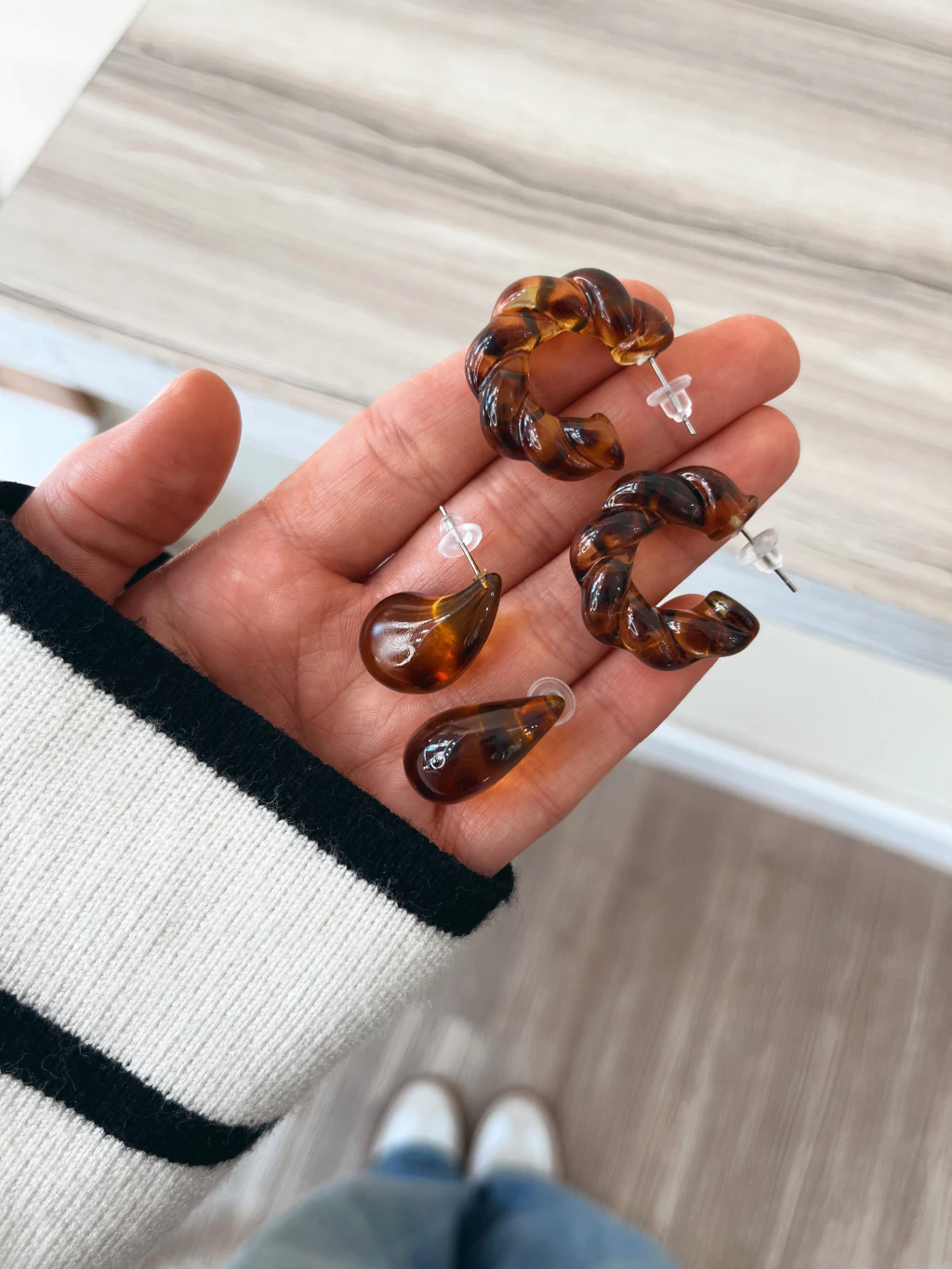 Modernas medias argollas de acero quirúrgico, livianas y cómodas para usar todos los días. Su diseño tramado con efecto carey aporta un estilo original y versátil, fácil de combinar tanto con looks casuales como elegantes. Un accesorio que suma personalidad y tendencia a cualquier outfit.