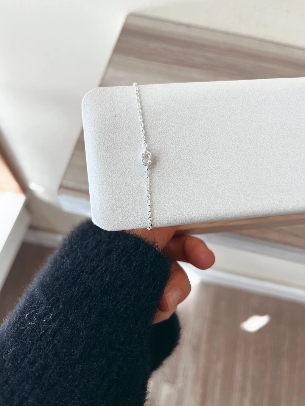 Pulsera en plata 925, regulable, con un delicado dije circular de cúbics engarzados que aporta brillo y elegancia en un diseño minimalista. ✨