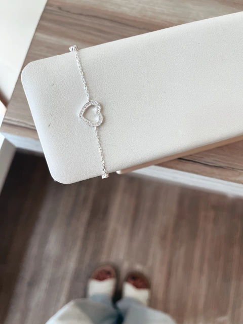 Descubrí la elegancia y delicadeza de esta pulsera en plata 925, con un corazón central decorado con micropavé que aporta un brillo sutil y sofisticado. Su diseño regulable permite un ajuste cómodo y seguro para diferentes tamaños de muñeca.